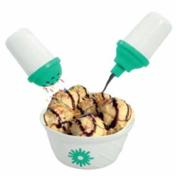 The lid of the ChillFactor Ice Cream Maker doubles up as a bowl for you to scoop your ice cream into once made. Decorate your ice cream treat with sauces and sprinkles using the two pots included and then use the scoop to enjoy your delicious, chilled creation! Comes with a handy stand to hold the ice cream maker and accessories in so you can store everything neatly when you have finished using!