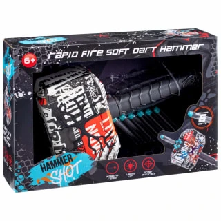 Have hours of fun with the rapid fire Graffiti Gun Hammer Shot. This soft dart hammer has amazing range and lights up when firing.