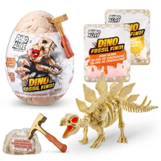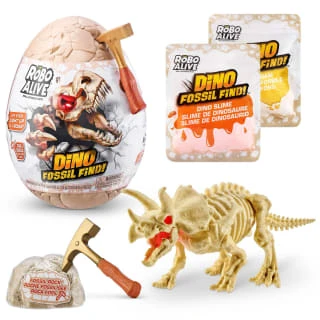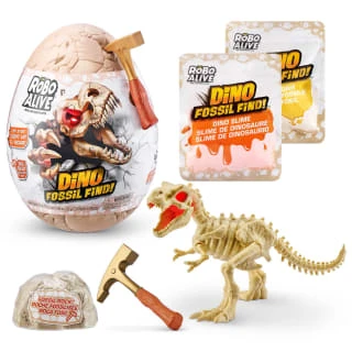 Join the adventure with Robo Alive Dino Fossil Find! Dig through rock, sand, and slime using the excavation tool to find 1 of 4 dinosaur fossils (each sold separately).