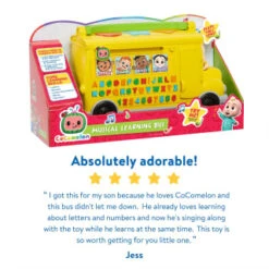 JJ is ready to take little learners on an upbeat bus ride with the CoComelon Musical Learning Bus. Inspired by the hit educational YouTube Kids and Netflix series, CoComelon, this interactive toy bus allows children to engage in their own early learning adventures with JJ.