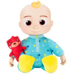 Soft plush toy is inspired by J.J., a popular character from the educational CoComelon YouTube series.J.J is ready for bed in his iconic onesie, clutching his favourite teddy bear pillow plush.