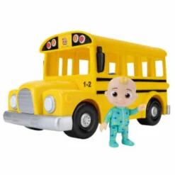The school bus has room for 6 of your favourite CoComelon friends! Press on the front of the bus and listen as “Wheels on the Bus” plays for you and your child to sing along to!