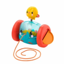 As your baby walks and pulls the elephant along, colorful rattle beads pop around inside while the wheels flap and the birdy buddy bobs around on top.
