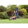 Equipped with central height adjust with 5 different cutting heights (2-6cm) you can achieve a beautifully manicured lawn. The foldable dual lever handles make the mower easy to use and easy to store.
