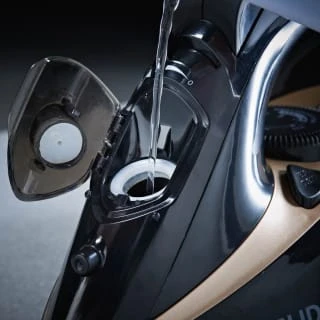 This stylish black and gold iron, which features an easy glide ceramic soleplate and 3100 watts power, effortlessly smooths fabrics and removes creases, providing faster ironing.