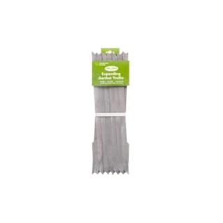 This grey expanding trellis with a robust frame is ideal for supporting climbing plants.
