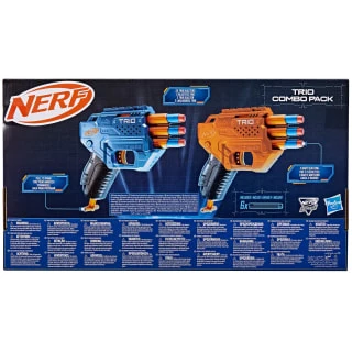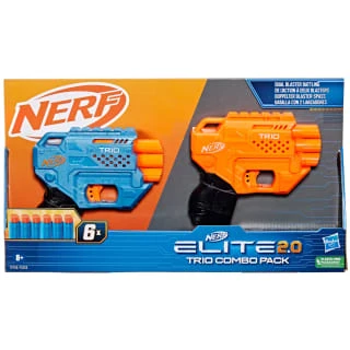 Blast into dart-firing fun with this Nerf Elite 2.0 Blaster assortment! Launch into dual blaster battling with the Nerf Elite 2.0 Trio Combo Pack that includes 2 Nerf Elite 2.0 Trio blasters and 6 Nerf Elite darts.