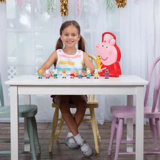 Includes: Peppa Pig, George, Suzy Sheep, Candy Cat, Emily Elephant, Edmund Elephant, Pedro Pony, Danny Dog, Rebecca Rabbit