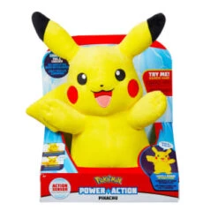 Interact with Pikachu like never before with Power Action Pikachu! Featuring Action Sensor Technology, squeeze Pikachu’s hands to interact with him.