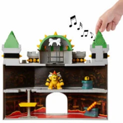 Included in this playset are an exclusive two and a half inch Bowser figure, interactive environment pieces with feature mechanisms, and authentic in-game sounds.