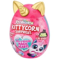- Glow in the Dark Eyes! These furry friends love to explore Rainboville after dark. Turn off the lights to watch your Kittycorn’s eyes glow with night vision! Rainbocorns are the ultimate surprise egg! Combining mystery unboxing, quirky surprises, and cuddly plush, Rainbocorns are sure to be your new best friend! There are so many surprises to find: Boo-Boocorns, reveal hearts, and even Rainbocorn Poop… The layers of magic and excitement never end! There are so many new Rainbocorns hatching from Rainboville – who will you find?!